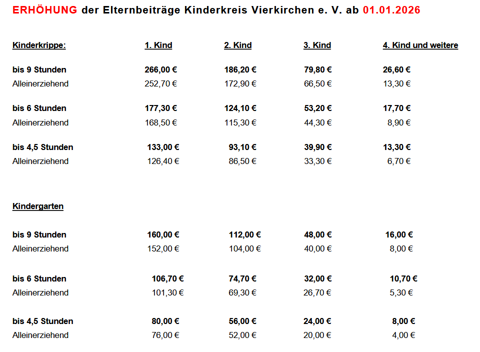 Erhöhung der Elternbeiträge ab Januar 2026